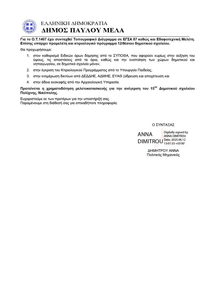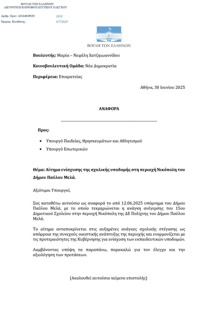 Ημερομηνία κατάθεσης: 19/11/2025 Υπουργείο: Παιδείας, Θρησκευμάτων και Αθλητισμού Αναφορά Σελίδα Αναφοράς (Βουλή)