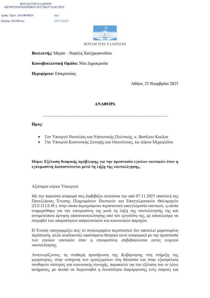 Εξέταση θεσμικής πρόβλεψης για την προστασία εγκύων ναυτικών όταν η εγκυμοσύνη διαπιστώνεται μετά τη λήξη της ναυτολόγησης.