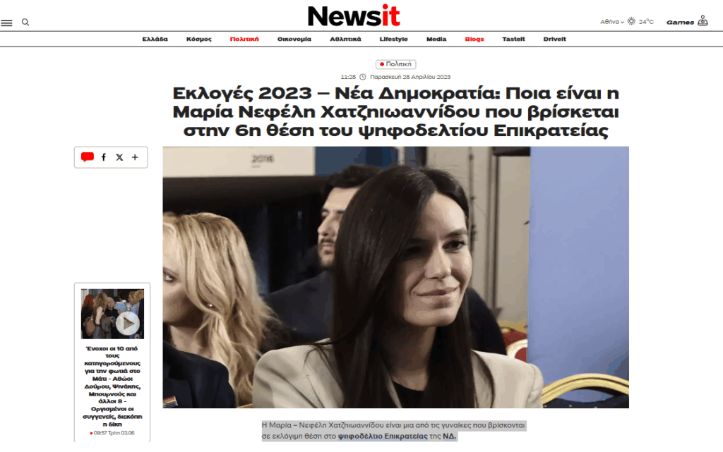Το ψηφοδέλτιο Επικρατείας της ΝΔ έχει την Μαρία – Νεφέλη Χατζηιωαννίδου στην 6η θέση, η οποία μπορεί να τη φέρει στην Βουλή.