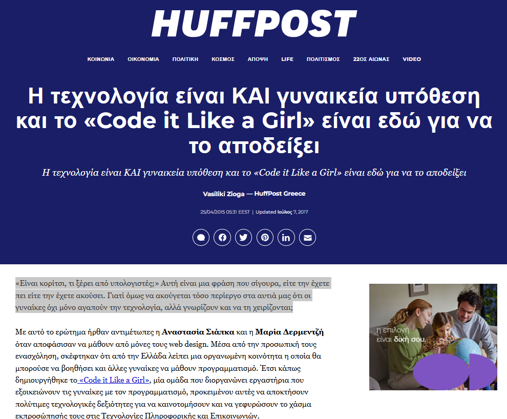 Η τεχνολογία είναι ΚΑΙ γυναικεία υπόθεση και το «Code it Like a Girl» είναι εδώ για να το αποδείξει