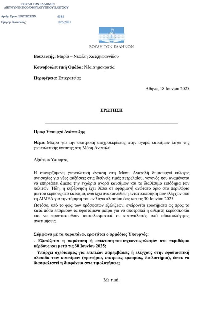 Ημερομηνία κατάθεσης: 25/07/2025 Υπουργεία: Ναυτιλίας και Νησιωτικής Πολιτικής Ερώτηση Σελίδα Ερώτησης (Βουλή) Αρχείο απάντησης 1 Αρχείο απάντησης 2 Η επίσημη ανακοίνωση του Υπουργείου Ναυτιλίας και Νησιωτικής...