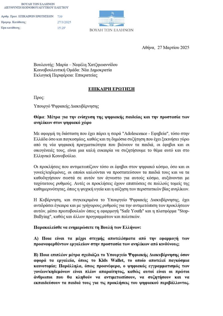 Μέτρα για την ενίσχυση της ψηφιακής παιδείας και την προστασία των ανηλίκων στον ψηφιακό χώρο.